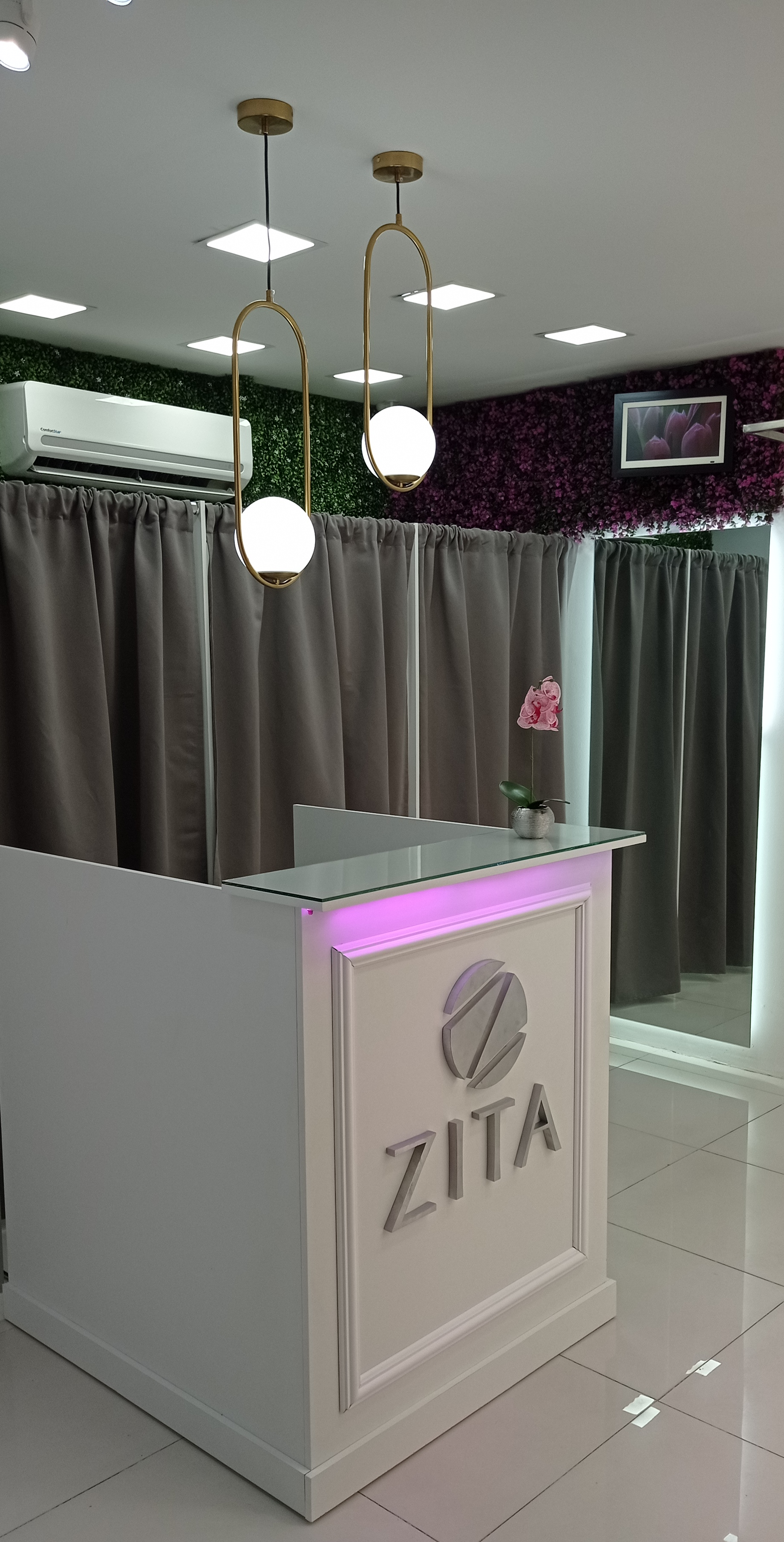 - Rediseño Espacial y Optimización del Flujo: Se reconfiguró por completo la distribución. El counter fue rediseñado a una escala más funcional y reubicado estratégicamente. Esta acción liberó espacio crucial para crear tres vestidores amplios, cómodos y equipados con espejos individuales, mejorando drásticamente la experiencia del cliente.
